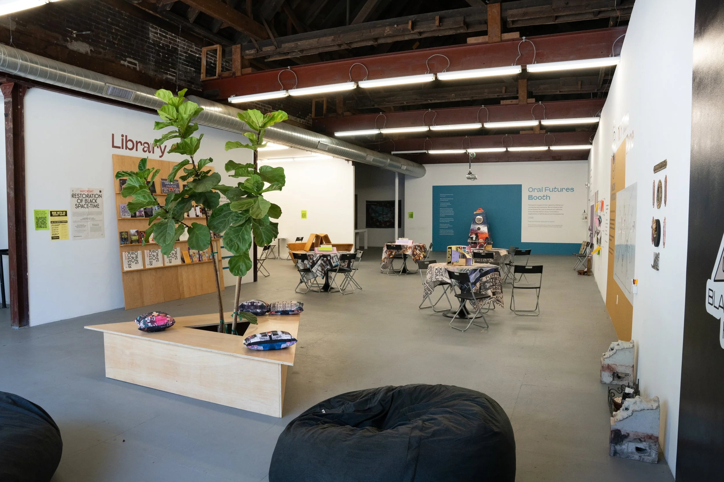 Community Futures: Space-Time Liberation Lab (CF:STL Lab) is a three-month-long Afrofuturist housing and land justice lab at The Luminary. CF:STL Lab will provide a temporary convening space-time for housing advocates, artists, organizers, tenants, and other people impacted by housing insecurity and land injustice and/or interested in co-creating strategies to address its impacts. With these projects, BQF invites community members to participate through the marking, mapping, and storage of space and time that can later be reclaimed.