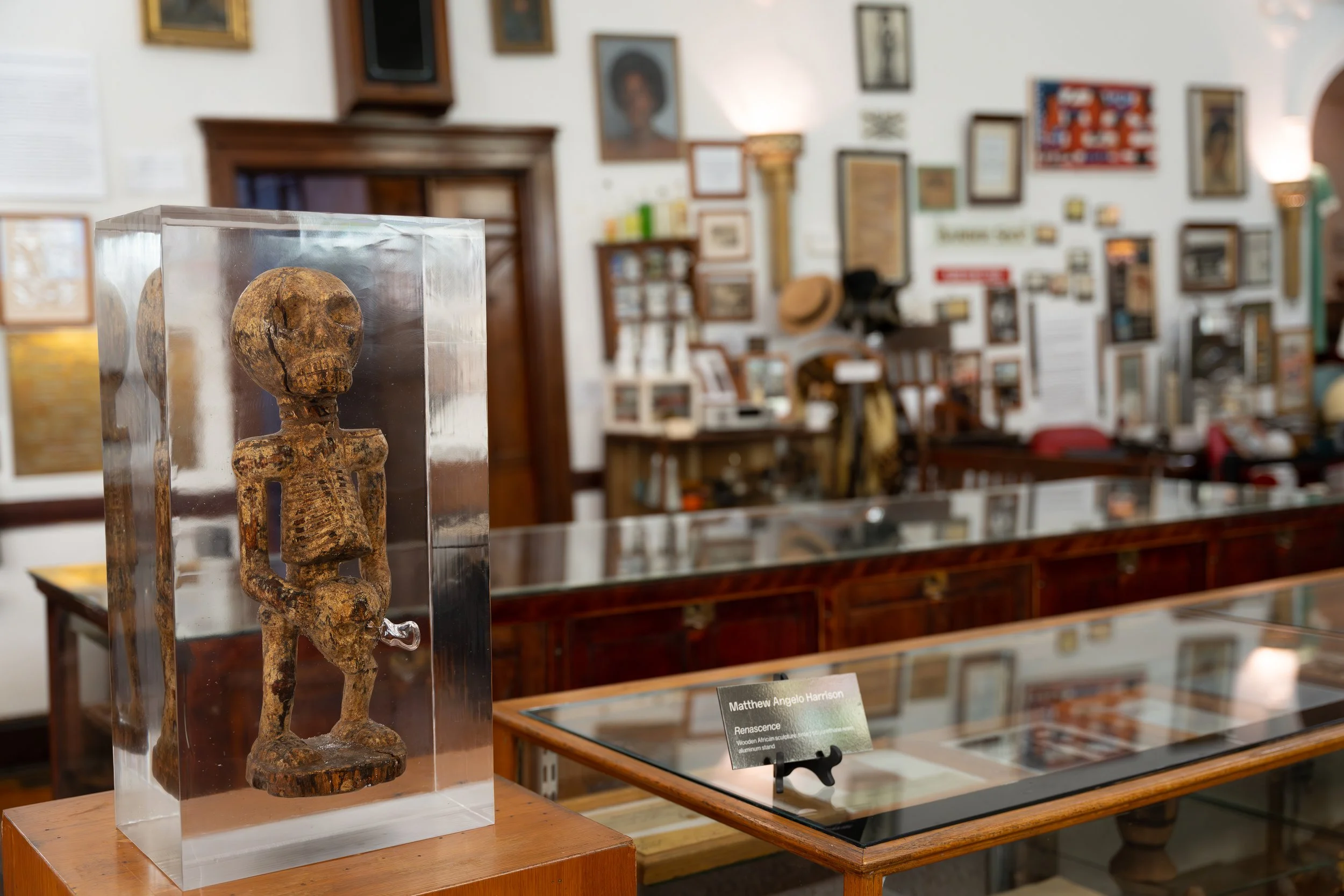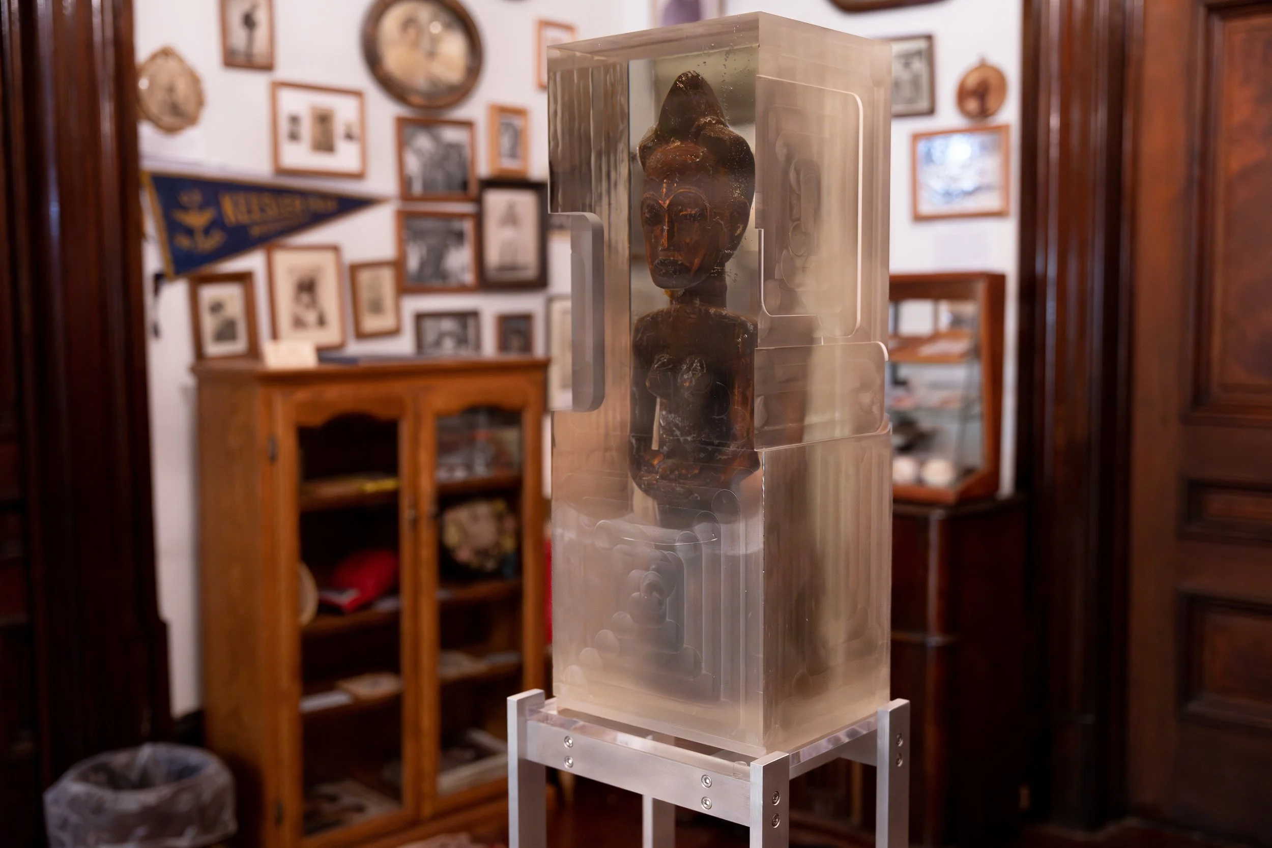 For Counterpublic 2023, Harrison’s sculptures nest alongside the dense historic collection of the George B. Vashon Museum of African American History, a house museum founded by Executive Director Calvin Riley that is dedicated to Black material culture and tells the history of prominent St. Louisans and Black experience. Situated within a historical framework designed by Riley, the Vashon’s collection creates a rich dialogue with Harrison’s inquiries into authorship, ownership, and presentation while making meaningful connections with Black history through material culture.